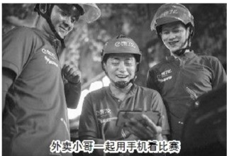 有时胡根伟送餐到住户门口,屋子里如果有比赛的声音传出,他会忍不住问一句比分如何。