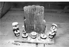 2008年太和殿大修时,我们发现太和殿藻井平台中央供有神牌一座(如图),前面有香炉、烛台、灵芝五供,此外东西南北四方分别朝向正中各供奉一座符板。神牌上,住着汉传佛教的文殊菩萨,藏传佛教中的大白伞盖和观音菩萨,并且还镇以道教的璇玑八卦图,也算是将满天神佛都请来护佑皇宫了。