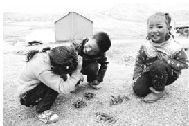 “我刚上山就开始找,趴下来才能找到。因为虫草的生长期分为小、中、大,所以要趴下来。山上清风拂面、万里无云、阳光明媚,在我们很努力找的时候,我那淘气的弟弟,把一根干柴看成是虫草,引得我们哭笑不得。”成林措毛写道,“虽然挖虫草很累,却酸中带甜。”相比之下,小男孩扎西托美就有成就感多了,他说:“虫草是极为珍贵的药材,我们农民就是靠卖虫草来养活自己。这不,这次我又去挖虫草了,还挖了93根呢。”