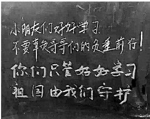 最近,一块写着35个字的黑板火了:“小朋友们好好学习,不要辜负哥哥们的负重前行。你们只管好好学习,祖国由我们守护。”1月3日傍晚,武警某部进行野外拉练时路过无锡市阳山中心小学,因天黑借宿在学校,搬动了课桌椅,喝了饮水机里的水。第二天出发前,武警官兵将教室里的课桌椅摆放整齐,把地面打扫干净,写下了那几句暖心留言,还留下20元买水钱。“你们只管好好学习,祖国由我们守护”,他们是这么说的,也是这么做的。