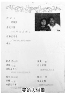 她问婚姻登记处:“为什么不核实身份证跟本人呢?那个结婚证复印件寄过来我看了,跟本人差别很大。”