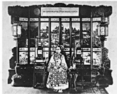 这张假照片具体是谁做的,已难考证。不过,他们把慈禧太后合成到另一个场景中去,显然是为了让她给这些家具、陈设做“代言”。笔者推断,主使制作这张假照片的极有可能是个古董商。为了把自己出售的古董和家具,与皇家沾上边,卖个好价钱,他们强行把慈禧太后“拉”进来做广告。