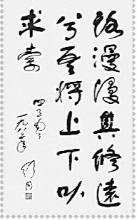 “路漫漫其修远兮,吾将上下以求索”——一辈子都在写字的舒同仅仅为舒安留下了这一幅书法作品,但其中流露的意味远远超过字本身,这里面有舒同对自己一生的高度总结和深入思考。困苦磨难,是人生必须要经历的挑战,但没有过不去的坎儿,戮力前行、不停求索,终能拨云见日。透过舒安的作品,观者也能清晰地发现他“求索”的足迹:没有华丽的铺陈,没有精巧的修饰,历经坎坷磨难,愈挫愈勇,激发出他对于历史的沉思与忧虑,对于命运的抗争与呼唤。这是父一辈子一辈的精神传承。