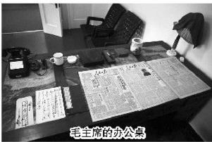 从香山公园东门入园,拾级而上,便可来到双清别墅。六角红亭旁,池水清澈,绿草茵茵。屋内入口处,悬挂着一张毛泽东同志在香山读报的黑白照片,报纸上“南京解放”四个大字赫然可见。屋内摆放着毛泽东曾使用过的办公桌、沙发、床等家具及物品。