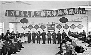 1982年1月16日上午,朝阳区十八里店公社十八里店大队为4对青年举行集体结婚典礼。十二队党支部书记乔全英说:“原来我们大队结婚大办酒席的风越刮越猛,简直成了‘公害’,去年我家卖了四口大肥猪全交了份子钱。如今实行婚事简办,大家都减轻了负担,怎么能不高兴!”