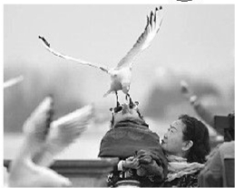 12月3日,昆明滇池,一名小女孩用嘴咬着面包花式喂海鸥。(中新网 12.4)
