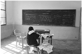尽管只有一名学生,但两位老师还是尽心尽职,认真完成教学任务。每天六节课,上午下午各三节,除了轮流上语文、数学课,还开设了科学、思想品德、地方教材三门科目。