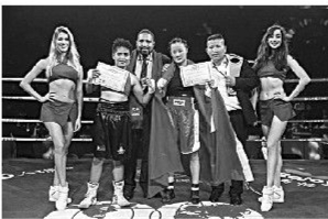 2013年8月9日,湖南衡阳,在WBO(世界拳击组织)洲际拳王争霸赛上,比基尼美女举着中国国旗和印度国旗上场。胡蝶穿着鲜绿色战袍,手戴猩红色手套,在嘻哈音乐和鼓点中入围绳。她扎着脏辫,感觉凸出的手指关节紧紧抵着拳套。