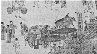 在市场上,各种汤饮作为解渴的饮料出现在小本经营商人的摊位上。对此,北宋画家张择端的《清明上河图》中有所反映,图中画了近20个在大遮阳伞下经营饮食、水果的摊位,其中一个摊位上方挂着“饮子”招牌。在当时首都开封还可以看到“当街列床凳堆冰雪”出售的商人,并备有砂糖绿豆等,供人饮用。