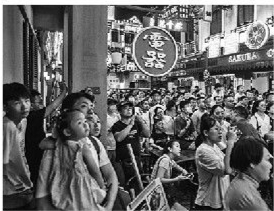 摄影、道具、场务迅速清理现场装备。几位主演在助理的呵护下移步下一场景。副导演喊着招呼其他群众演员抓紧站位。“小心脚下,别踩线”,灯光师傅一手扯着电线,一手扛着灯架,现场一阵忙乱。