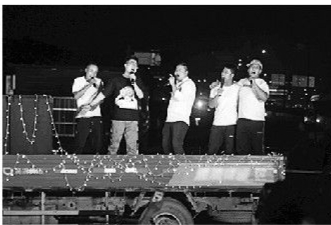 事实上,此前10多天,在同一个停车场、同一辆平板货车上,同样是这群司机,已经自发开了一场演唱会。只是当时,刘东方花100元租的现场音响效果不理想,杭州市半山街道办事处得知此事后,觉得这是一件有意义的事情,联合一些爱心企业为他们众筹了第二场演唱会。