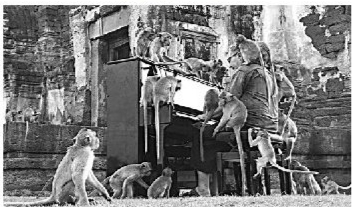 常听“对牛弹琴”,你听过“对猴弹琴”吗?泰国华富里府因新冠引起旅游业中断,游客的投食减少,59岁的英国音乐家巴顿决定用音乐让饥饿的野猴平静下来,并引起人们对这群饥饿猴子的重视。演奏过程中,猴子在他周围跑来跑去,有几只还爬上了钢琴,他称自己发现野猴“真的在享用音乐”。