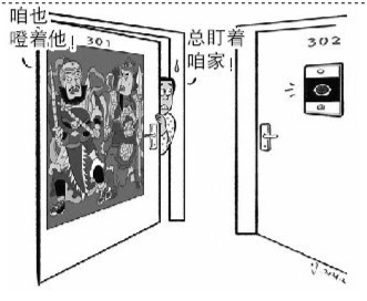 南京市建邺区万达西地二街区的住户冯先生告诉记者,他的邻居在自家大门旁的墙面上装了一个电子猫眼,正对着他家大门,晚上可以很清楚地看到红外光。“仿佛一家人的生活被监控了,家里还有小孩,总是提心吊胆的,怕邻居或者他家租客产生歹意。”