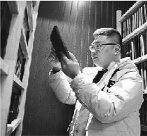 南京闹市区,一座古朴的宅院。朱漆大门隔绝了尘世的喧嚣,青砖黛瓦透露出历史的味道。初春探入门缝,微风轻拂树梢。院落西南角的一间斗室,窗外鸟鸣盈耳,屋内静谧无言,只听木屑从木板上掉落的沙沙声。老旧的办公桌上,形状各异的刻刀摆放其间。案台边的铁皮小台灯,散发着莹白色光芒。王康蜷身伏案,右手紧握拳刀,左手顶住刀背,刻刀划过木板,隽秀的汉字慢慢成型。任墙外车水马龙,眼前这一块棠梨木板,就是王康的整个世界。