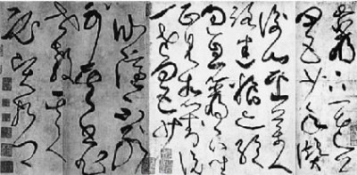 孙过庭认为,只有草书才能把我们带到一个充满生气的、活跃的、一以贯之的状态中。他说:“夫劲速者,超逸之机;迟留者,赏会之致。将反其速,行臻会美之方;专溺于迟,终爽绝伦之妙。”张旭的书法把书写推到了字和非字的边缘,把过去的真草发挥为狂草,使草书成为一种特殊的书写技能、一种特殊的书体,实现了中国书法法度与自然两端的融合。杜甫在《饮中八仙歌》中说:“张旭三杯草圣传,脱帽露顶王公前,挥毫落纸如云烟。”