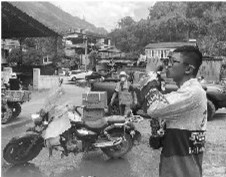小怪在当地经营二摩托车店,从22号开始,她便骑着踏板车,背着竹篓送物资,“以前,家里人说一个女孩子玩摩托车不务正业,这次他们没说什么,终于长脸了”。