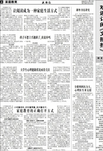 小学重在陪伴、初中重在尊重、高中重在放手。父母要把重心放在尊重孩子的意愿上,和他们做朋友,认同他们的选择和决定;把重心放在家校配合上,家校共进、给孩子优质的家庭教育;把重心放在自己工作上,发挥家庭环境的熏陶优势。从某种意义上说,家庭教育影响孩子的未来发展高度,提高家庭教育内力才是王道。