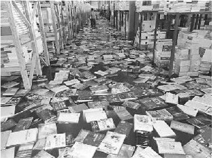 7月31日下午起,涿州市码头镇的北京西南物流中心涿州园遭遇洪水,多家出版机构库房被淹。位于西南物流东区的北京时代华语国际传媒股份有限公司(简称北京时代华语)所在库房受灾严重,水电中断,道路不通,进水深度高达2米。时代华语总裁冉子健透露:“近8000平方米的库房,360万册书,2.2亿元码洋几乎全部受损。”