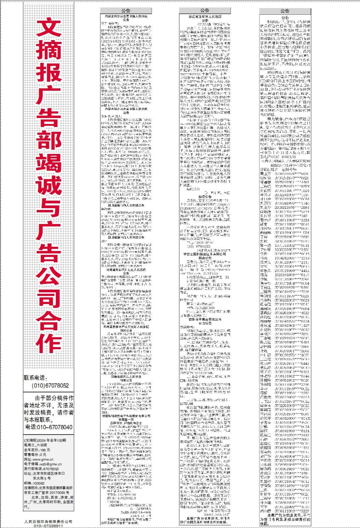 文摘报广告部竭诚与广告公司合作