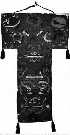 T形帛画为啥出现在墓室中的内棺盖上?它并不是普通的画作,而属于墓葬美术范畴,在西汉被称为“非衣”,当时人认为非衣是墓主人灵魂升天的媒介。帛画中,凝聚了汉代人对地府和仙境的想象,从下到上的绘画内容分为地下、人间和天上三个部分。九重天阙,人首蛇身的天帝统御苍穹,金乌振翅的日轮与蟾蜍、玉兔栖息的月宫相对;红尘人间,以玉璧为界划分成上下两层,上层是墓主人的升天,墓主人辛追着华服、拄拐杖,在3个侍女簇拥下缓缓升天,下层是对她的祭祀;地下幽冥,赤足巨人脚踏鲸鲵,双掌托起大地。