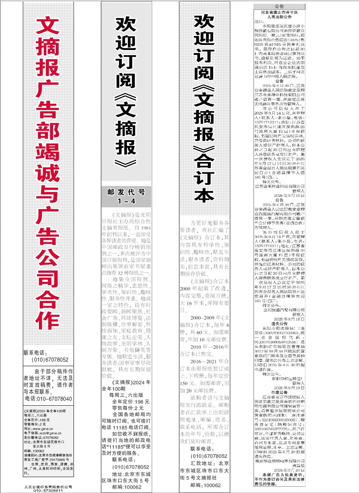 文摘报广告部竭诚与广告公司合作