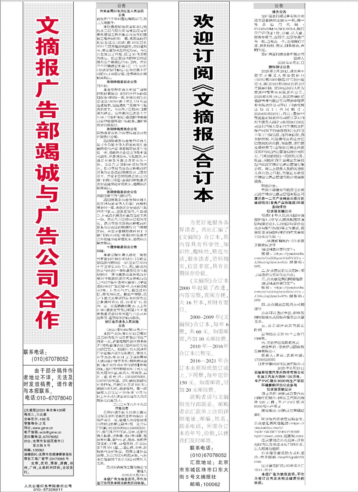 文摘报广告部竭诚与广告公司合作