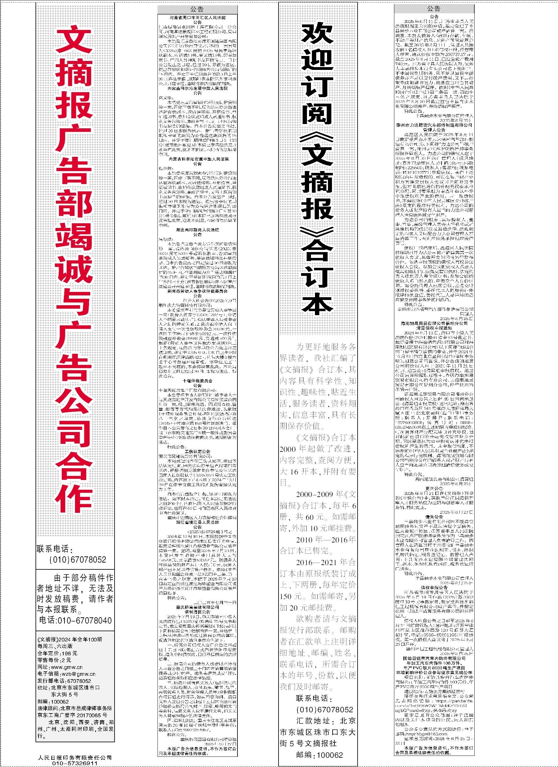 文摘报广告部竭诚与广告公司合作