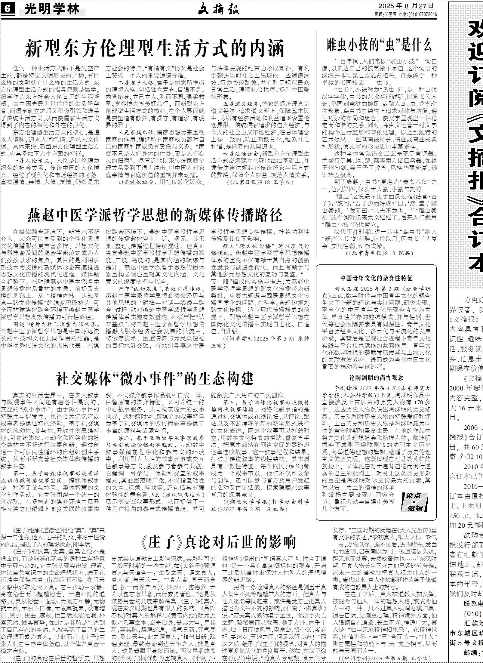 《庄子》的认真、贵真、全真之论不是虚玄的,而是能够在现实的多种生存场景中呈现出来的。它主张从现实出发,理解、体认自我意识中的生命理想状态,进而在污浊中保持本真,出淤泥而不染,在后天之假中求取先天之真。它主张动中求静,身在俗世而心超越俗世,开启心隐的道路,心灵从俗世中退场。无闹方可静,无物就无欲,无浊心自清,无假真就显,没有增加、减少、扭曲、遮蔽,性自然纯洁无瑕、朴素天然、诚实真挚。如此“是其所是”,达到了自己存在的本然,人就实现了自己的生命理想而成为真人。就此而言,《庄子》主张人们在生存中体验道,以个体之真合于道之自然。