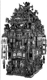 浙东地区的大户人家行婚嫁之事时,往往以大红装饰的杠箱、轿子等组成浩浩荡荡的迎亲队伍,绵延数十里,万工轿就被置于队伍的最前端,成为整个仪仗的视觉焦点。“坐上万工轿是身份的象征,也是幸福的记忆。”范佩玲曾走访坐过万工轿的老人,她们已近耄耋,可提起婚礼和万工轿,“无一不露出娇羞的笑容,眼睛亮亮的,满脸幸福”:那是一个良辰吉日,送亲队伍绵延迤逦,精致的宫灯随行进队伍摇曳生姿,细密的盘金绣轿衣在阳光下闪耀着,水晶球流苏牵着玻璃风铃发出悦耳的撞击……