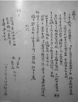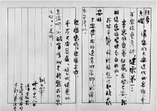 一、每天记日记,按月给你母亲看,同时给你们改;二、每天放学回来有一定的自修时间,不懂的地方,可请问胡先生给你们解释;三、大小楷每天要不间断的(地)写,与日记同时交你母亲看,将来我西南回来,当知你们读书的情形了;四、在农忙要帮助你二叔做事情,我们家道清贫,样样都要从俭朴上去做,我虽然做公事多,但终于落得两袖清风,仍不失为清贫,值得你们学的就是“不贪不拍”,希望你们永远记着这四个字;五、在学校里要尊敬教师、友爱同学,虚心学习;六、由家到桃山上学路太远,放学回家不能在路上玩,免得你祖父母及你二叔父母挂心。