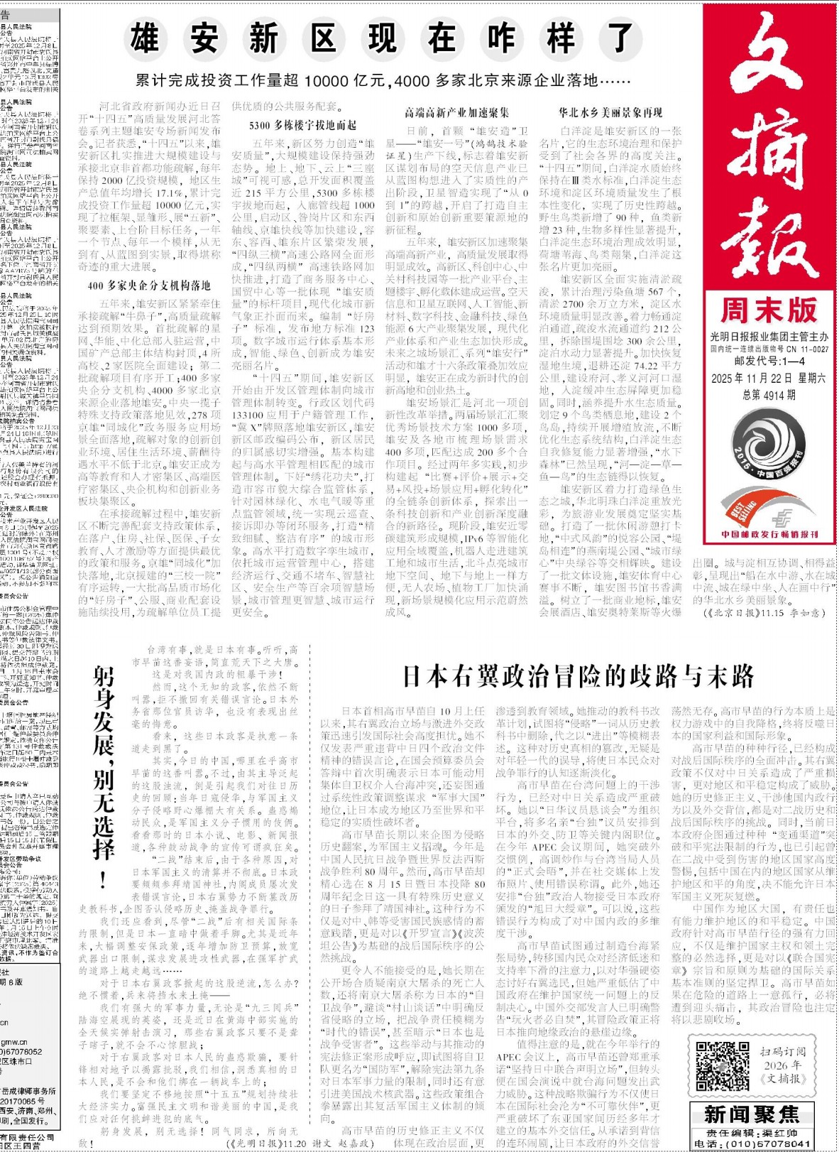 中国作为地区大国,有责任也有能力维护地区的和平稳定。中国政府针对高市早苗行径的强有力回应,不仅是维护国家主权和领土完整的必然选择,更是对以《联合国宪章》宗旨和原则为基础的国际关系基本准则的坚定捍卫。高市早苗如果在危险的道路上一意孤行,必将遭到迎头痛击,其政治冒险也注定将以悲剧收场。