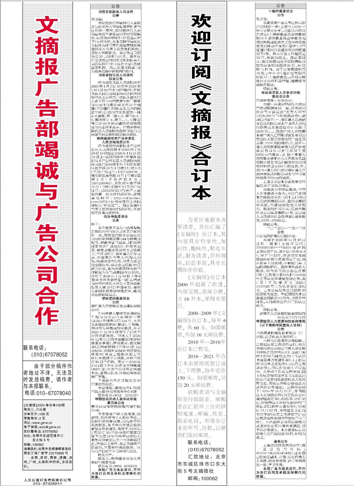 文摘报广告部竭诚与广告公司合作