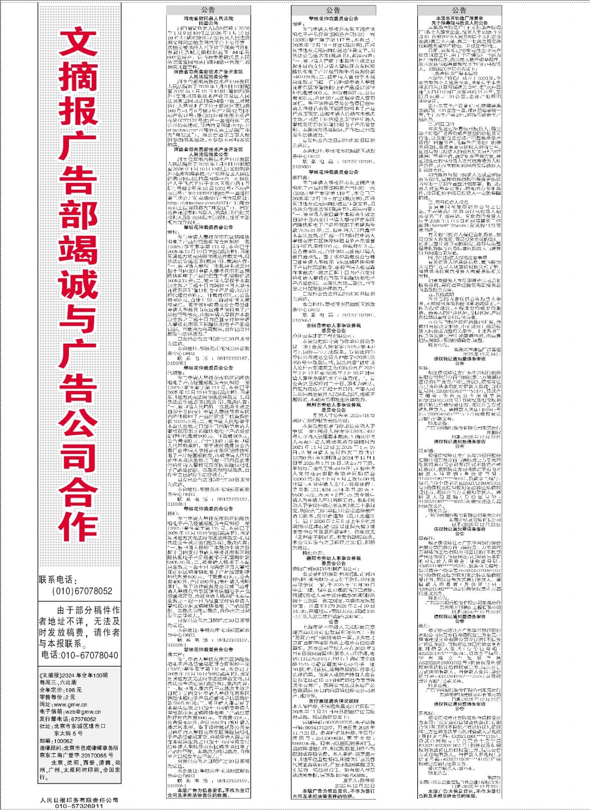 文摘报广告部竭诚与广告公司合作