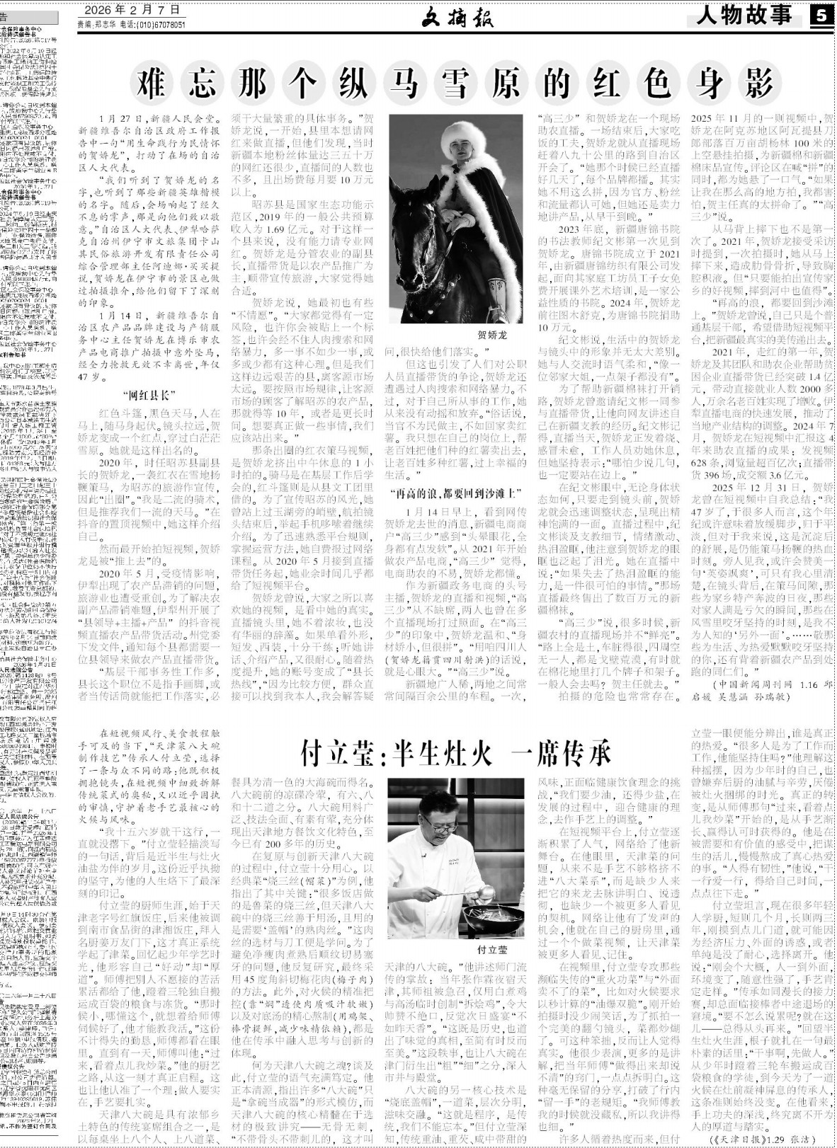1月14日,新疆维吾尔自治区农产品品牌建设与产销服务中心主任贺娇龙在博乐市农产品电商推广拍摄中意外坠马,经全力抢救无效不幸离世,年仅47岁。