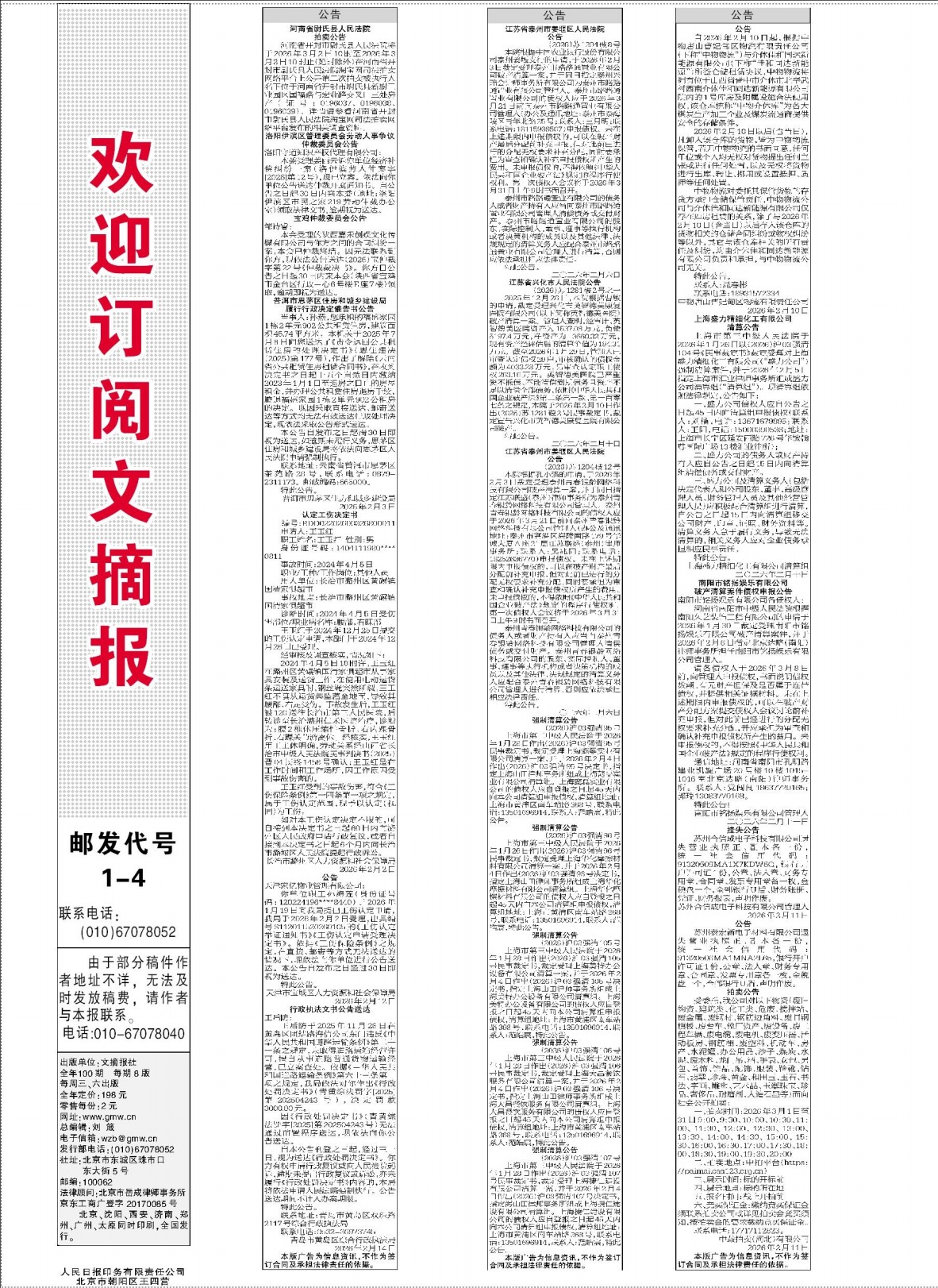 欢迎订阅文摘报