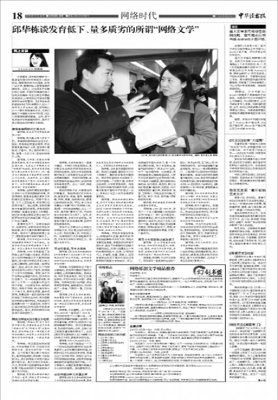 邱华栋谈发育低下、量多质劣的所谓“网络文学”