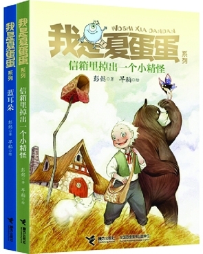 在已出版的《信箱里掉出一个小精怪》和《蓝耳朵》两本书里,到处闪现着作家的奇异灵感,充满欢悦气氛。夏蛋蛋是一个“童年活了八百九十九岁,老年只活了一岁”的精怪,他会魔法,当他把一粒玉米含在嘴里的时候,咒语就能生效。夏蛋蛋拥有精彩的童年,他的历险故事发生在人类世界:他通过一个信箱从精怪世界掉到人类世界,遇见了妖婆奶奶和大熊,最终见证了他们在酢浆草花丛中的浪漫婚礼;他从挂在晾衣绳上的一个红苹果里咬下一支蓝色蜡笔,认识了因车祸身亡变成了心叶的蓝耳朵先生,帮助他回家完成了最后的心愿。在这些故事里,彭懿仿佛化身为一个精力充沛的大男孩,尽情讲述着一个个精力充沛的冒险故事,让人感到出其不意,又忍俊不禁。