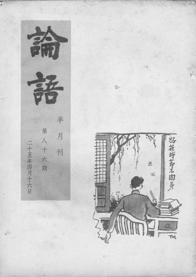 第三期“编辑后记”里又一次提到《笨拙》:“时局不宁,谣诼繁兴,令人悚然危懼。有人谓我们想做孔子,有人谓《论语》备出到六期而已。关于后者,我们可以保证决无其事,夭折非人生愿望之一。我们是在焚香祷祝《论语》万岁。我们看见英国《笨拙》从一七四九年出到现在,非常羡慕。若能饶舌而取得立场,我们也希望本刊,与时俱进。就是至我们老朽,本能执笔,也希望有人取而代之,继续此志。”