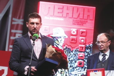 今年是十月革命一百周年,第十二届俄国大书奖仿行旧时代的“一切权力归苏维埃”,为今年的评奖活动设定了“一切权力归俄国文学”的口号。结果,记者、作家、文学评论家和政府媒体《俄罗斯报》文化部的主编列夫·丹尼尔金(ЛевДанилкин)以其描写俄国革命导师的传记《列宁:阳光中微尘的全能主》(Ленин.Пантократорсолнечныхпылинок),几乎没有悬念地赢得了大奖。
