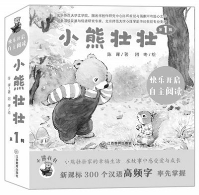 作为一家专业的教育出版社,江西教育出版社在童书板块的定位聚焦在有一定教育功能的儿童读物这一细分市场。早在两年前,社长熊炽看准学龄前儿童开展自主阅读和识字的痛点,专门来北京拜访了北京师范大学文学院从事图画书研究的陈晖教授和北师大心理学部长期从事儿童阅读心理和早期儿童阅读障碍研究的李虹教授。两位教授一拍即合,决定合作一套兼具文学性、艺术性和功能性的中文分级图画书。由李虹教授提供字表和词表,把关各个级别故事的难度;陈晖教授根据专业的字表和词表来创作小熊壮壮的系列成长故事。