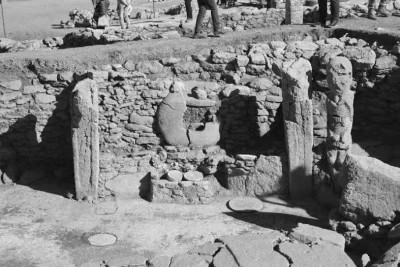 第二站是距离卡拉汉东北20公里外的塞费尔丘(Sefertepe)遗址,属于前陶新石器时代B阶段,年代比卡拉汉晚,已经都是长方形组合式房屋建筑了,但仍以“T”字形石碑柱支撑屋顶,保持古老传统,有的居室葬埋葬20具凌乱人骨,出土的各种动物形珠饰很有特色。第三站是距尚勒乌尔法仅4公里的古尔曲丘(Gürcütepe)遗址,已到前陶新石器时代之末,有长方形连间建筑。虽仍以狩猎采集为主,但农业和养畜业明显发展,种植小麦,饲养绵羊、山羊、黄牛、猪等。