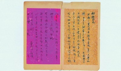 这通致李祖韩信共两页,分别写在印有云纹的金色和粉色笺纸上。2012年版《中华书局收藏现代名人书信手迹》书中影印了一通徐志摩给中华书局编辑所负责人舒新城的信札,系用同款金色云纹笺纸书写。此函钤盖中华书局签收章,收件日期为1930年8月9日。据使用的信纸判断,徐志摩致信李祖韩也应在1930年8月左右。