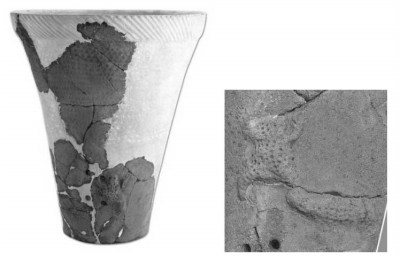 环太湖流域的良渚文化(距今5300—4300年)也有与蛇有关的发现。1997年,浙江海盐龙潭港遗址出土了一件良渚文化晚期的带流宽把杯(M12:32),器身刻画有两只蛇形动物,其身躯作长条形,环绕器身一周;双目圆睁,口中有锯齿状的利齿,尾巴为弯钩状。蛇身似有圆点纹饰,其实这只是陶器表面泥条崩落后呈现出的断面,并非原先的纹饰。