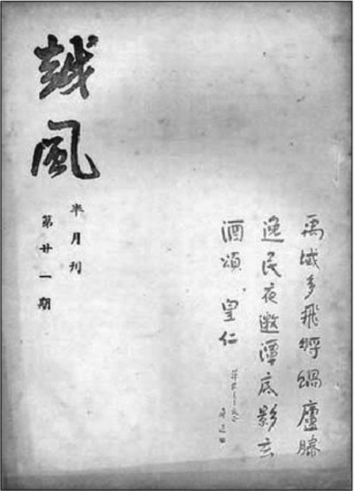 1935年10月,黄萍荪在杭州创办小品文半月刊《越风》,任主编,这也是鲁迅家乡的一份刊物。《越风》先是半月刊,共出二十四期;第二卷起改为月刊,出至第二卷第四期(1937年4月)停刊,除一份增刊外,共出二十八期。