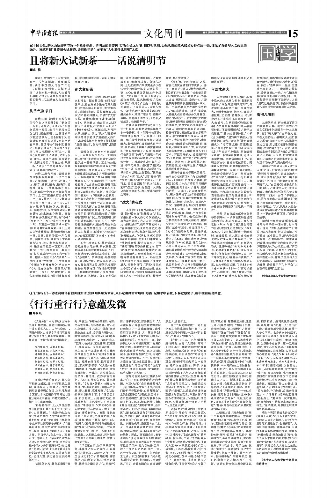 清代《百痴禅师语录》曾记载禅师与弟子的一番对话,耐人寻味。僧问:“如何是清明时节?”师答:“暗风吹弱柳,新火弄清烟。”可以看出,在中国古代,新火乃是清明节的一个重要标志。前述谢观之赋曾总结赐新火的意义为:“将以明而代暗,乃去故而从新。”清明正是丽日芳树、万物生长之时节,把以明代暗、去故从新的改火仪式安排在这一天,体现了自然与人文的完美融合。苏轼所谓“且将新火试新茶,诗酒趁年华”,亦不负“人生看得几清明”之意也。