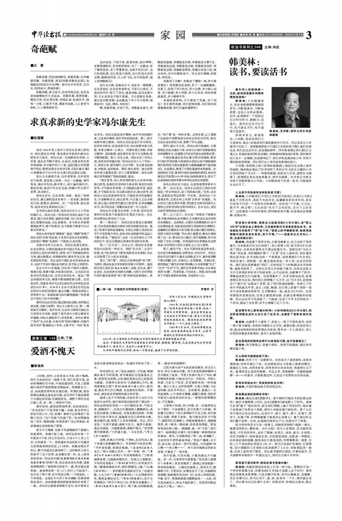 冯先生治史,志在求真、求新。他说:“我研治历史,最主要的追求有两个:一是求新,新的研究方向,新观点,新材料。另一个是求真,独立思考,追求对历史真相的认知。”