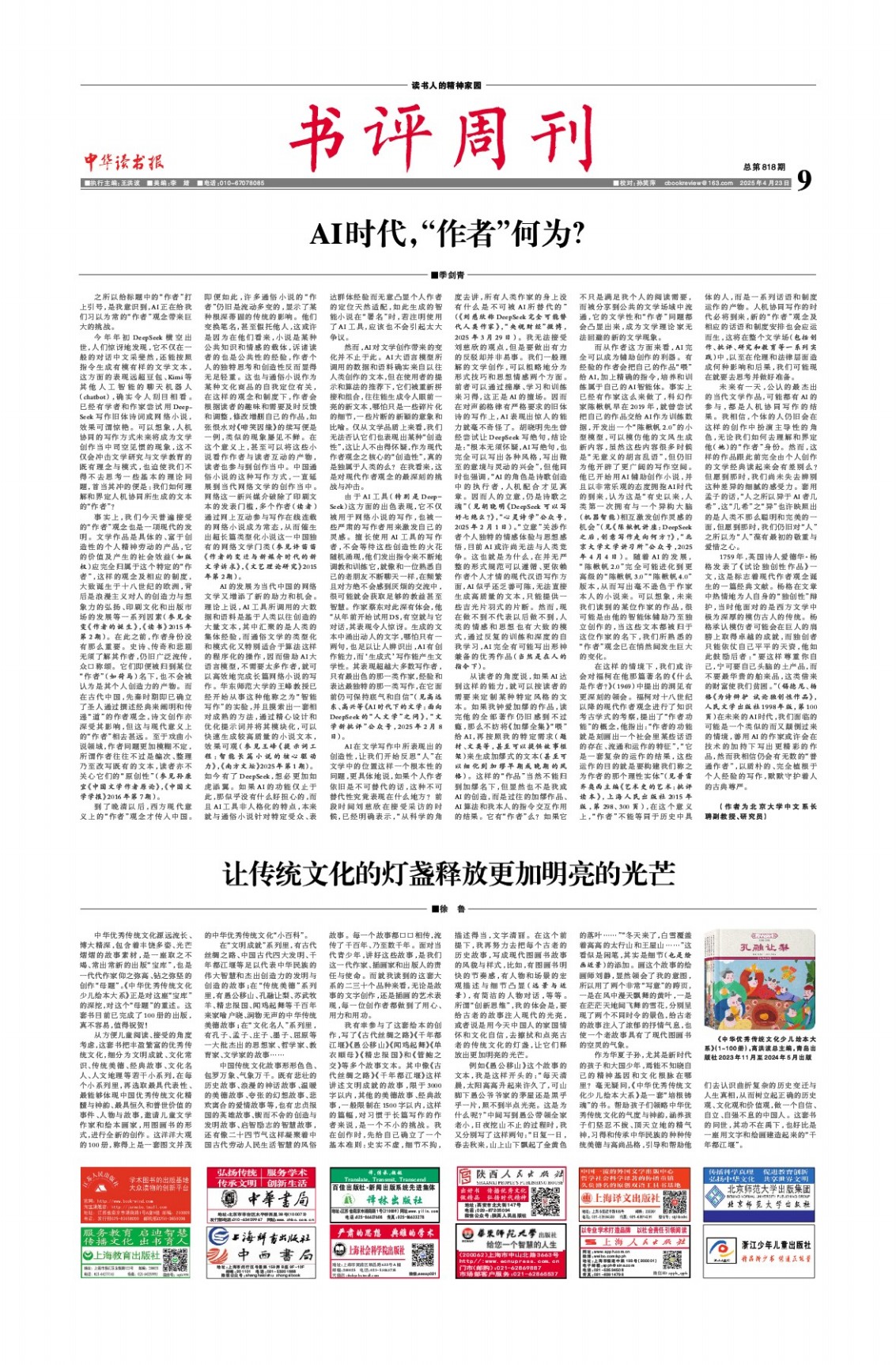 今年年初DeepSeek横空出世,人们惊讶地发现,它不仅在一般的对话中文采斐然,还能按照指令生成有模有样的文学文本,这方面的表现远超豆包、Kimi等其他人工智能的聊天机器人(chatbot),确实令人刮目相看。已经有学者和作家尝试用Deep⁃Seek写作旧体诗词或网络小说,效果可谓惊艳。可以想象,人机协同的写作方式未来将成为文学创作当中司空见惯的现象,这不仅会冲击文学研究与文学教育的既有理念与模式,也迫使我们不得不去思考一些基本的理论问题,首当其冲的便是:我们如何理解和界定人机协同所生成的文本的“作者”?