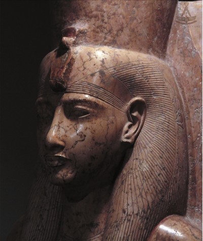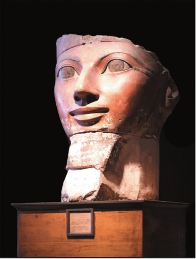 从埃及国家博物馆这尊石灰石头像的面容,我们可以看到一个性格坚毅的女性,同时也看到她的病态和衰弱。因此,古代埃及艺术家在以圆硕的明眸和高昂挺直的鼻梁展示这个盖世女王的威仪的同时,也以她含蓄着细微苦涩的轻闭的嘴唇和红色涂料掩饰不住的瘦弱、苍白的面容向3500年后的观者呈现了她真实的病楚姿色。奥西利德雕像是以奥西利斯神的面容雕刻在立柱顶部的雕像格式,是较模式化的神像或法老像雕塑格式。这个哈索女王像却非常传神地刻画出了她身心的深刻真实。一个旷世的权势女性、一个女性的真实生命意蕴,如此简约而细腻的刻画出来,这是古代埃及造型艺术的奇迹。