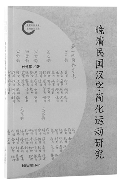 要之,孙建伟的《晚清民国汉字简化运动研究》是近年来汉字规范研究领域的一本力作,作者综合运用汉字学、计算机科学等学科的思路、方法,对晚清民国时期汉字简化的理论与实践进行了系统且全面的研究,为汉字规范史、汉字学史提供了不少新鲜的观点和材料,利于当下及今后的汉字规范工作,学术价值和现实意义都是十分突出的。