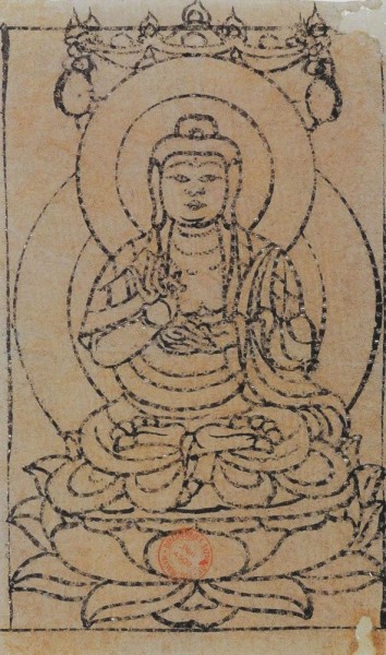 第四章讨论另外两种性质的画稿,即用于幡画制作和坛场图像的画稿。幡画的画稿笔法清晰连贯,成品与之相比,尺幅、动态一致,仅持物或衣纹略有不同,推测制作时可能会将画稿用于直接模拓复制,而非仅作为徒手起稿的参考。相对机械的复制方式可能也是某些幡画作品线条呆板、缺少立体感的原因。表现密教坛场的画稿,复杂而缜密,应该有僧侣参与制作,部分标注有颜色或仪式用具,推测这种画稿可能部分用于图像绘制,部分用于仪式布置或者辅助观想禅修。